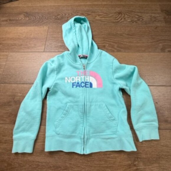 The North Face Girls Hooded Zip-Front Sweatshirt, Aqua, Logo, XS (6), Fall