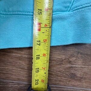 Measurements taken in flat lay position, approximate: pit to pit, full length (shoulder to hem) and sleeve length