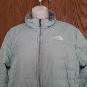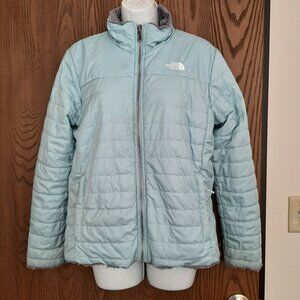 The North Face Girls Light Blue Mossbud Reversible Puffer Jacket XL