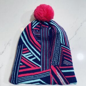 The North Face Girls M Beanie Hat Fleece Lined Pom Fuchsia Pink Bright Snow Ski