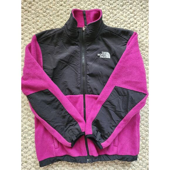 This is a super cozy The North Face fleece jacket for girls in size medium. It's perfect for layering on chilly days or wearing on its own for outdoor adventures.