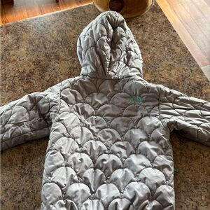 Floral Side - Small rip on the left side. Always had covered with a small heart shaped patch the same color as the jacket and used the gray side.