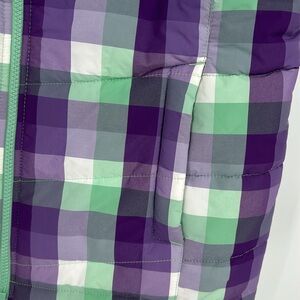 The North Face Girl's Reversible Plaid Puffer Vest Purple Mint White
