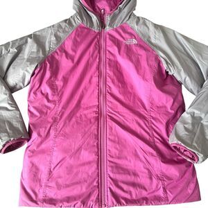 The North Face Girls XL Pink purple Gray Reversible Hooded Fleece Lined Jacket