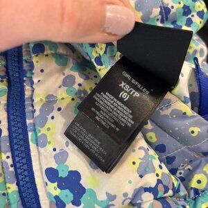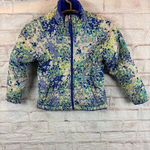 The North Face Girls XS Blue Patterned Reversible Mossbud Fleece Winter Jacket