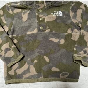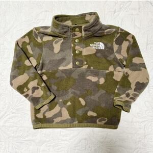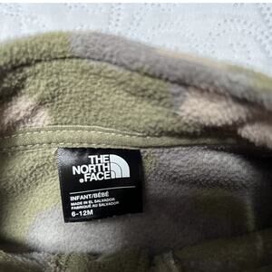 The North Face 1/4 snap pullover jacket. Green camouflage fleece sweatshirt. Very good condition, size 6-12 months.