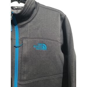 Description: The North Face Gray 200wt Cinder Full Zip Jacket, size M, good condition. Features 93% polyester, 7% elastane knit Micro Pique fabric, two front zip pockets, Napoleon pocket, embroidered The North Face logo on chest, machine washable, perfect for casual or outdoor wear despite cuff piling. Smoke-free home, fast shipping, bundle to save!