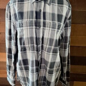 This gray casual button-down shirt from The North Face offers a soft, comfortable fit with a classic plaid design. Ideal for everyday wear, it features a blend of light and dark gray tones for a versatile look.