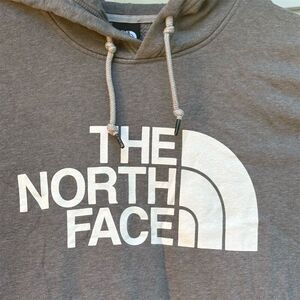 The North Face Gray Half Dome Hoodie Sweatshirt White Logo TNF Size L Pullover