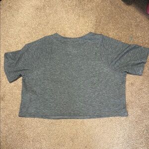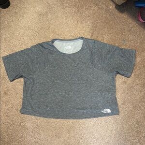 This crop top from The North Face is crafted in a heathered gray cotton-blend fabric, offering a relaxed and boxy fit. It features a classic crew neckline and short sleeves, making it ideal for a casual, athletic look. The iconic logo branding adds a touch of style to this versatile piece.