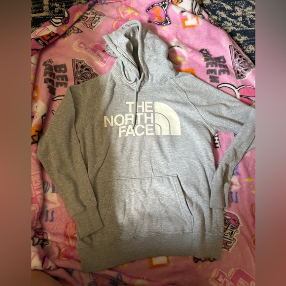 Cozy gray hoodie from The North Face. Features a front pocket and hood. Good condition.