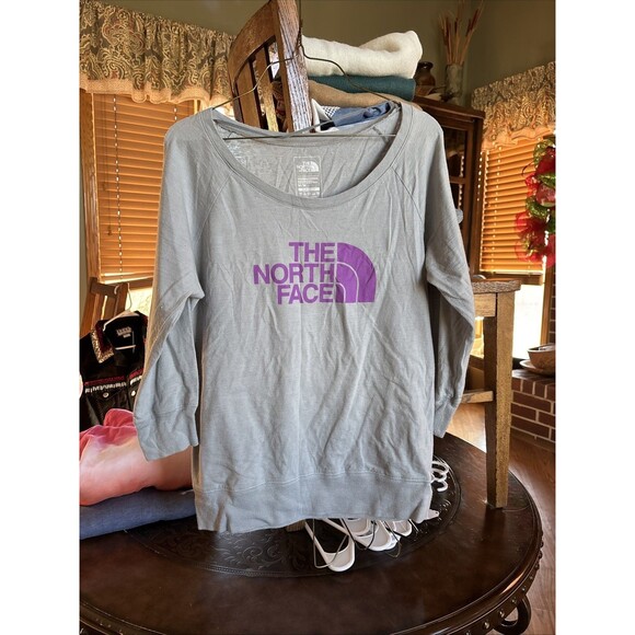 The North Face Gray Purple Logo Scoop Neck 3/4 Long Sleeve T-Shirt Med Women’s