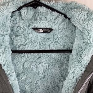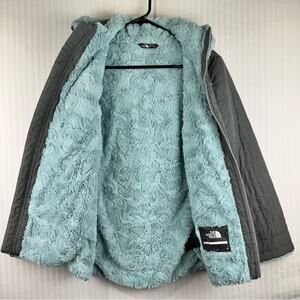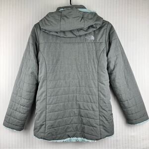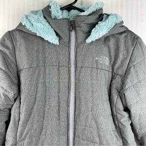 The North Face Gray Quilted Winter Jacket Light Blue Fleece Lined Girls Large