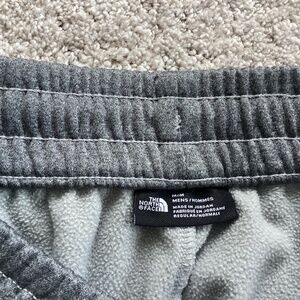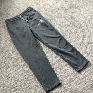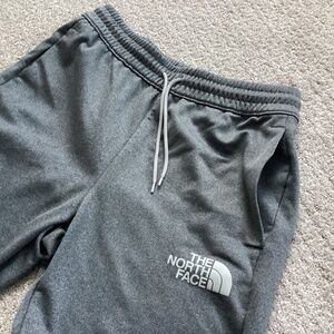 Comfortable gray sweatpants. Elastic waistband with drawstring. Features The North Face logo.
