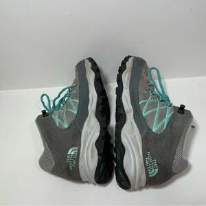 Gently worn girls size 4 the north face grey and mint outdoor winter boots. Please review all photos for any signs of wear-pictured as is. Disclaimer: Any items with any wear/staining has not been treated, and unsure of ability to remove/treat condition. Comes from a smoke free home, bundle with other items to save & minimize shipping cost.