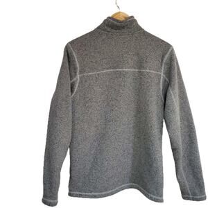 The North Face Heather Gray Full Zip Fleece Lined Sweater Jacket Medium GUC PLEASE NOTE PHOTO: THERE HAS BEEN A REPAIR ON THE FRONT.
