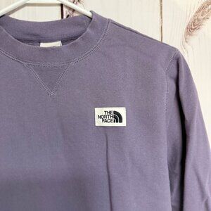 north face heritage patch crew, womens lunar slate sweatshirt, gray purple crewneck, cozy fleece pullover, tnF medium sweater #TheNorthFace #HeritagePatch #WomensMedium #LunarSlate #EUC