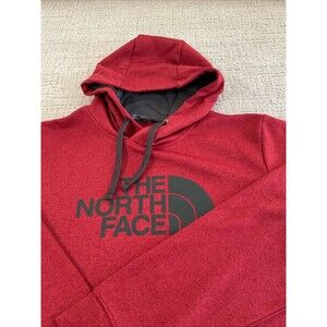 The North Face Hoodie Sweatshirt is a stylish and functional pullover designed for outdoor activities or casual wear. Made from a blend of polyester and cotton, this fleece hoodie features a solid red color with a graphic logo accent. It has long sleeves, a hooded neckline, and a drawstring closure for a comfortable fit. With a regular fit and pockets for convenience, this hoodie is versatile for all seasons and various activities such as gym training, walking, cross-training, and running. It is machine washable for easy care.