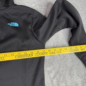 The North Face Hoodie Womens Small Black Blue Logo Pullover Fleece Sweatshirt