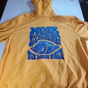 The North Face Yellow Men's XXL Hoodie is a stylish and practical pullover perfect for the colder seasons. Made with a regular fit and featuring a hooded design, this solid yellow hoodie is the ideal activewear choice for men. With its quality construction from Guatemala, this hoodie offers both comfort and warmth during the winter, fall, and spring seasons. Perfect for outdoor activities or casual wear, The North Face Hoodie combines style and functionality for the modern man.