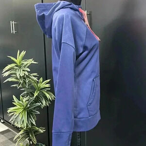 The North Face Hoodie,fleece lined,full zip, pouch pockets,thumb holes,drawcord