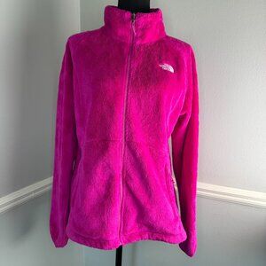 The North Face Hot Pink Fur Fleece Zip-Up Jacket Sweater Pockets Women's Large