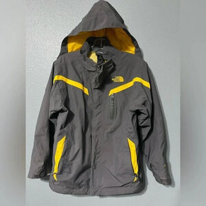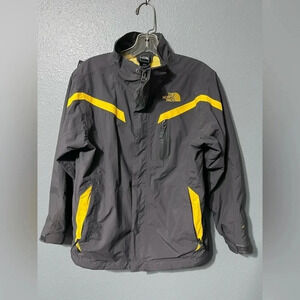 The North Face Hyvent Gray/Yellow Jacket Coat Boys Sz L (14-16) Double Zip EUC