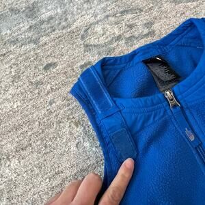 The North Face Kids Hyvent Insulated Blue Snow Bibs. Toddler boy or size 4T. Insulated, waterproof overalls style snow pants are perfect for a day of skiing or snow fort building! Features cozy fleece top, boot gaiters, center zipper, adjustable velcro shoulder straps, and reinforced knees. Some wear to the fabric. E-Z grow system still in tact; let out to extend the fit 1.5 inches.