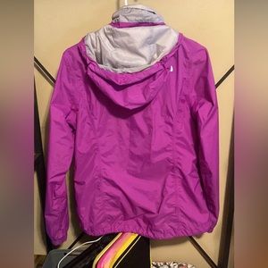 Beautiful, purple North Face rain jacket! In perfect condition besides a small (smaller than a pea) burn hole near pocket on the left side.