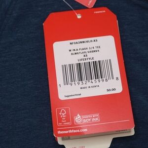 The North Face In A Flash 3/4 Sleeve T Shirt Women’s XS New With Tags Blue