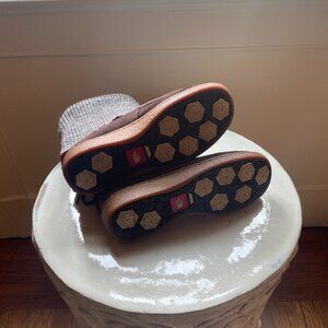 The North Face Alana Suede Fold Over Sweater Boot in a chocolate brown color. It has a side zipper and lace detail in the back. It has rubber soles and Primaloft 200 grams of insulation.