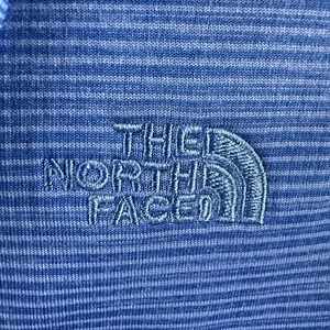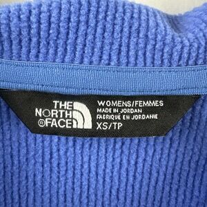 Stay cozy and stylish with this blue The North Face jacket. Made of polyester with a fleece fabric type, this mid-length jacket features a striped pattern, long sleeves, and a full zipper closure with logo accents. Designed for women in an athletic fit, this jacket comes in size XS and is suitable for various occasions including travel, casual wear, and workwear.