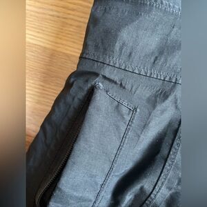 @mama2rose Hello! The color is indeed black. The zipper does not have any issue, and the picture is just to show it works and goes up and down. As for the hole, it isn’t actually a hole but rather just the side pocket stitching coming apart. It does not penetrate to the down. If you buy, I can ship within 24 hours by the way :)