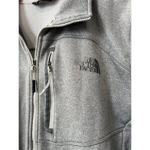 This North Face men's jacket features a stylish medium-gray design with fleece lining for added warmth. Lightweight build, full-zip closure, and pockets make it functional and comfortable.