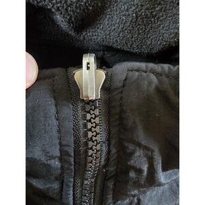 Zipper works but the pull tab has broken off, see photos. Has some pilling on the fleece parts.