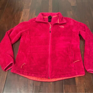 The North Face Jacket Women’s Large Pink Fuzzy Fleece Sweater Logo Osito Coat