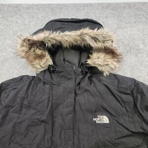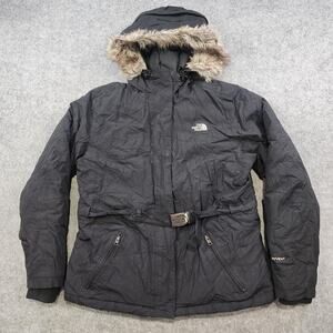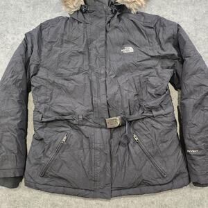 The North Face Jacket Womens XL Black HyVent Goose Down Belted Faux Fur Hooded
