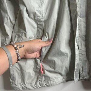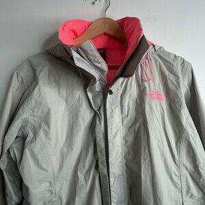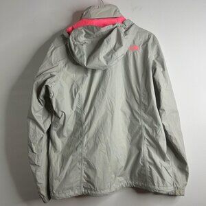 The North Face Jacket Womens XL Gray Pink Hooded Full Zip Rain Windbreaker Coat