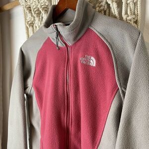 The North Face Jacket MED L Fleece Grey Pink Full Zip Unlined Camping Hiking