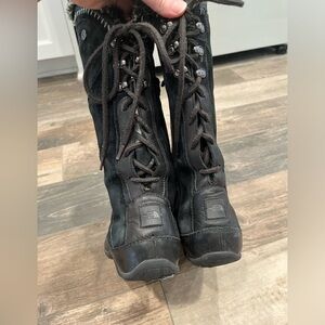Step up your winter footwear game with The North Face Janey boots. These black suede boots Sz 8 are perfect for any winter activity, whether it's hitting the slopes or running errands. Featuring round toe, zipper and back laces for easy on and off, and a flat heel under 1 inch for all-day comfort.