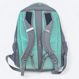 The North Face Jester Hiking Camping Climbing Outdoors Laptop Backpack from The North Face in Light Gray & Teal Green.