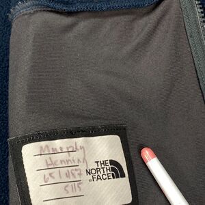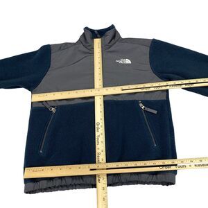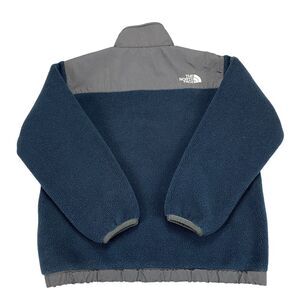 Stylish kids hoodie by The North Face. Features a blue and gray color scheme. Comfortable and warm design.