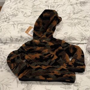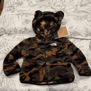 Charming fleece jacket by The North Face. Features camo pattern and playful ear design. Ideal for warmth and style.