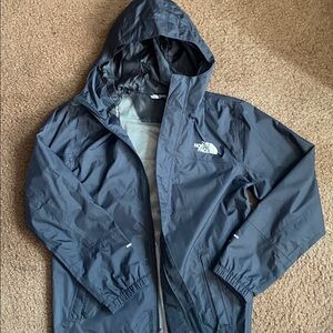 Durable and stylish raincoat. Features a hood and elastic cuffs. Perfect for rainy days.