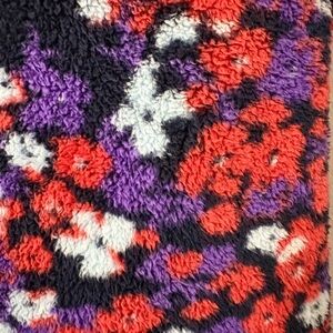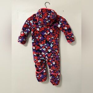 Cozy and colorful one piece with a floral design. Features a bright red and purple pattern. Perfect for keeping warm.