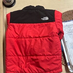 Warm and stylish puffer jacket. Bold red with black accents. Ideal for outdoor adventures.