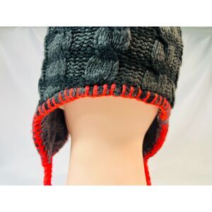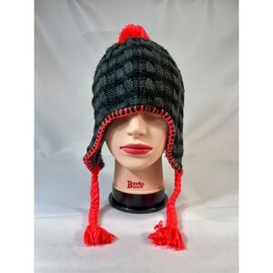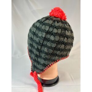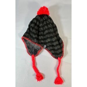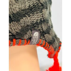 The North Face Knit Fleece Lined Pom Tassel Toque Gorpcore Beanie Striped Gray