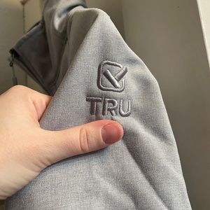 Amazing quality jacket. Has my previous company's logo on the arm, not super noticeable (TRU, they are a software company)