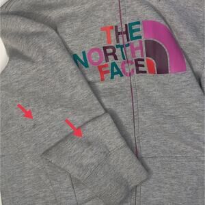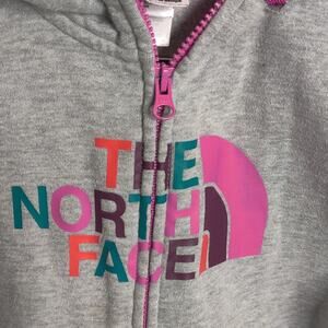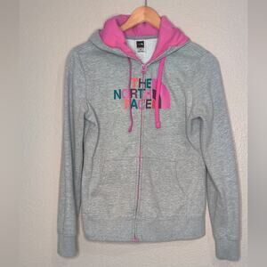 The North Face Ladies Grey Zip Up Hoodie with Pink and Multicolor Graphic Small