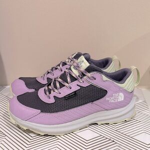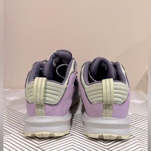 The North Face sneakers in lavender and charcoal. Sleek design with durable construction. Perfect for everyday wear. Used once. Clean and excellent condition